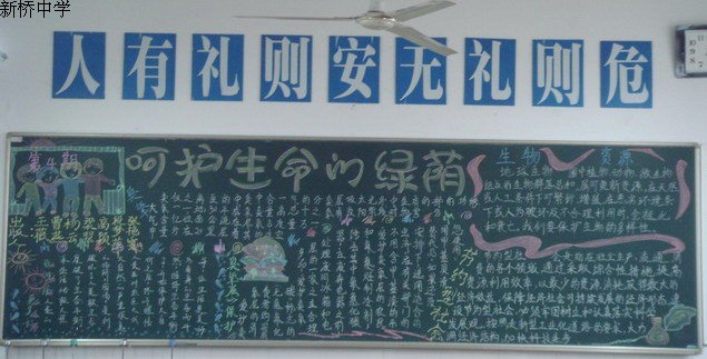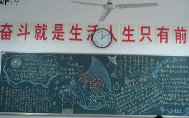 有的班级在板报中向大家传授了节约用水的小窍门;有的班级向我们描绘了一旦缺水后,这个世界将陷入的无比黑暗的生存状态;有的班级为我们展现了青山绿水所带给我们的生命的滋润。