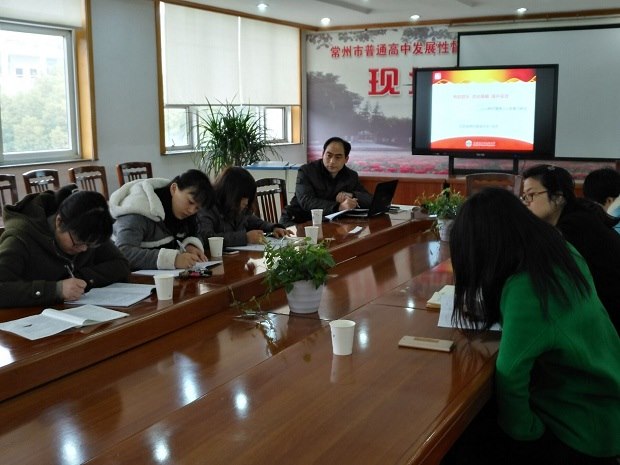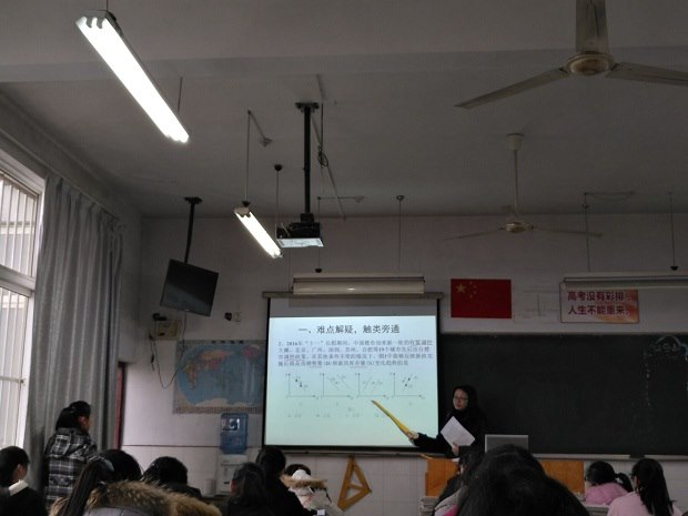 第一天上午,刘老师与我们一起进行了听评课活动。高绿岸老师开设了公开课《高三一模讲评课》,高老师以难点释疑、触类旁通为主题重点讲评了选择题,首先让学生自主释疑,充分掌握学情,然后根据学生错因带领学生回归教材,同时进行了热点剖析,总体来说是一节学生能“学进去”有所得、“讲出来”能解惑的时效性强的试卷讲评课。我组老师珍惜学习时间,及时提出了高三复习中的困惑,刘老师都一一作出了真诚的交流,同时指出,在高三有效的复习时间内,教师要善于巧干,用心用情调动学生学习兴趣。