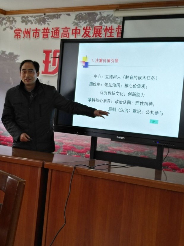 第二天上午,刘老师结合昨天的试卷讲评课,做了《有的放矢 优化策略 提升时效》的高三二轮复习策略研究的专题讲座。刘老师提出二轮复习要有的放矢:他从近年来江苏高考卷分析谈起,指出现在高考注重价值引领,坚持能力立意,优化情景创设,命题稳中有新;指出了要关注的2017考点变化;最后重点详细说明了二轮复习要优化策略提升时效:首先指出了,用学生的“学”,代替教师的“灌”;用学生的“讲”,丰富教师的“教”;激发内力,优化外力,形成合力;用教师的“退”换来学生的“进”,重点说明了如何优化策略,如知识复习:扫点、突重、构图、理题、纠错、押题;关注社会热点,研究典型试题;最后还事无巨细地帮助我们梳理了如何指导学生具体答题思路和答案组织的方法。