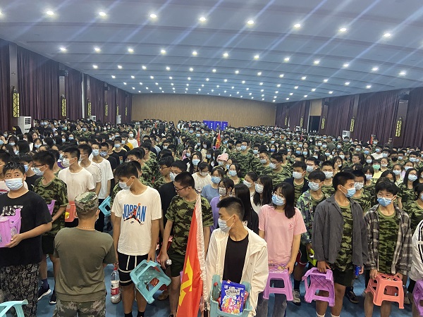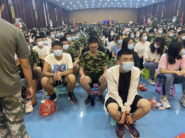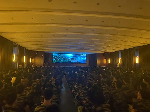 同学在一天训练之后,排着队准备观看爱国电影《血战湘江》。通过电影的观看,加强学生的爱国教育,弘扬爱国主义精神!
