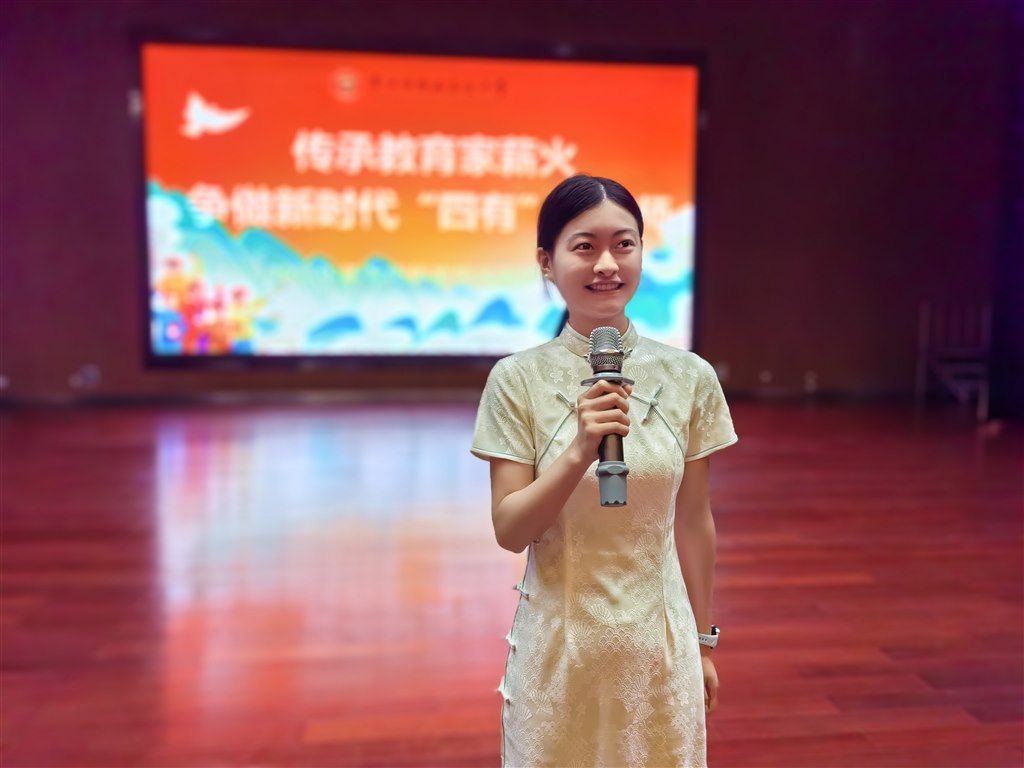 蒋青青老师通过三个真实的育人小故事,展现师者的责任与温度,提出“以理想为帆,以道德为舵,以学识为桨,以仁爱为光”的育人理念,誓言让教育家薪火在强国建设征程中愈发璀璨,呼应师德建设月“铸师魂”的核心要求。