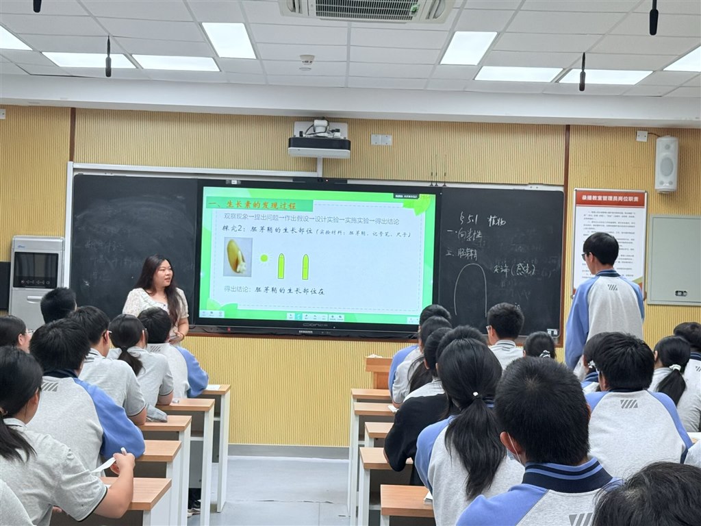 2025年9月26号,颜颖老师在高二3 班开设了一堂别开生面的生物课。课程以“植物生长素发现史”为脉络,颜老师全程以问题为引导,学生通过模拟操作经典实验,重温了科学家们的探索历程,深刻理解了科学探究的本质。