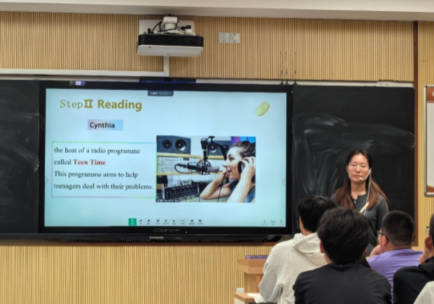 第一部分为赵雨欣老师的新教师亮相课。赵老师首先通过问题引入,引导学生初步思考与分享自身经历,有效激活课堂氛围与相关背景图式。随后,学生通过阅读文本,梳理并总结了文中三个案例人物与父母之间存在的典型问题。紧接着学生通过听录音完成填空任务,进一步聚焦于描述亲子关系与情感的具体语言表达。在Discussion部分,赵老师在听力基础上,鼓励学生针对前述问题探讨更多元、建设性的解决方法,拓展了学生的思维广度。随后的写作输出环节是本节课的高潮,学生将所学的语言知识与讨论的见解进行整合,完成相关的书面表达,并进行了成果展示,实现了从输入到内化再到输出的完整学习过程。最后,赵老师引导学生归纳和学习了更多相关的高阶表达,为学生语言的准确性与丰富性提供了有力支撑。
