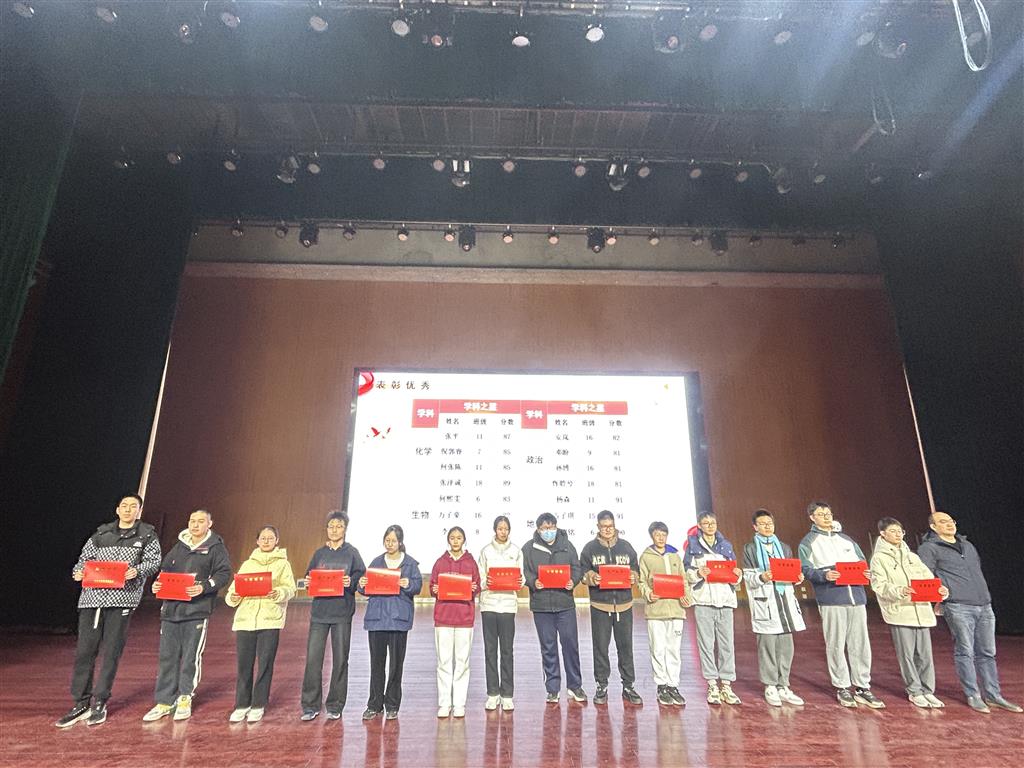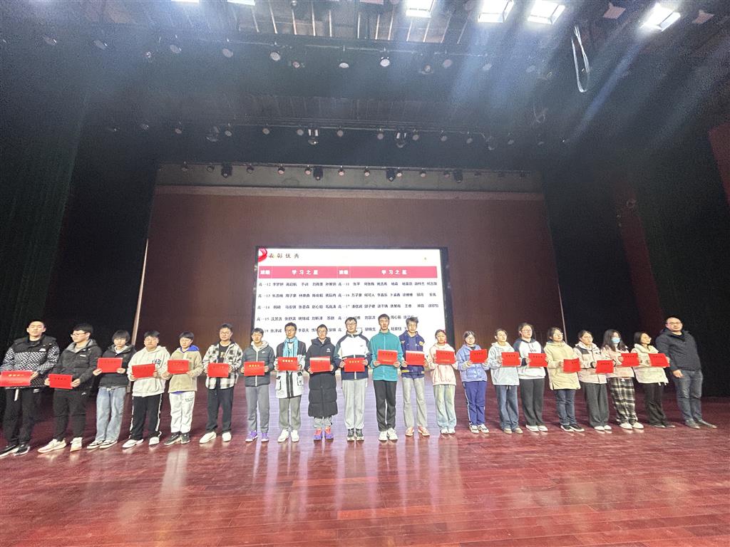 会议的第一项议程进行了优秀学生的表彰。在激昂的颁奖乐曲和全体师生热烈的掌声中,各班涌现出的“学习之星”、“勇毅之星”、“学科之星”依次上台,接过象征荣誉的奖状。他们以笔为剑,以墨为锋,在书山学海中砥砺前行。优异的成绩源于日复一日的专注与坚持,他们是当之无愧的学习榜样!