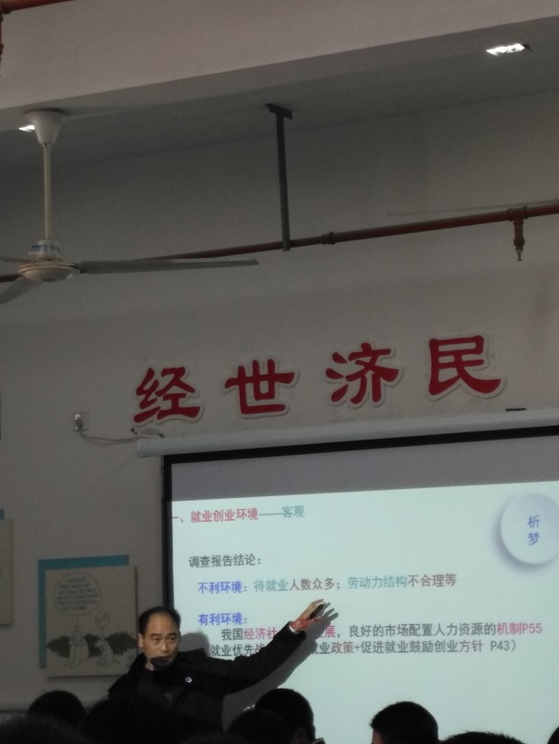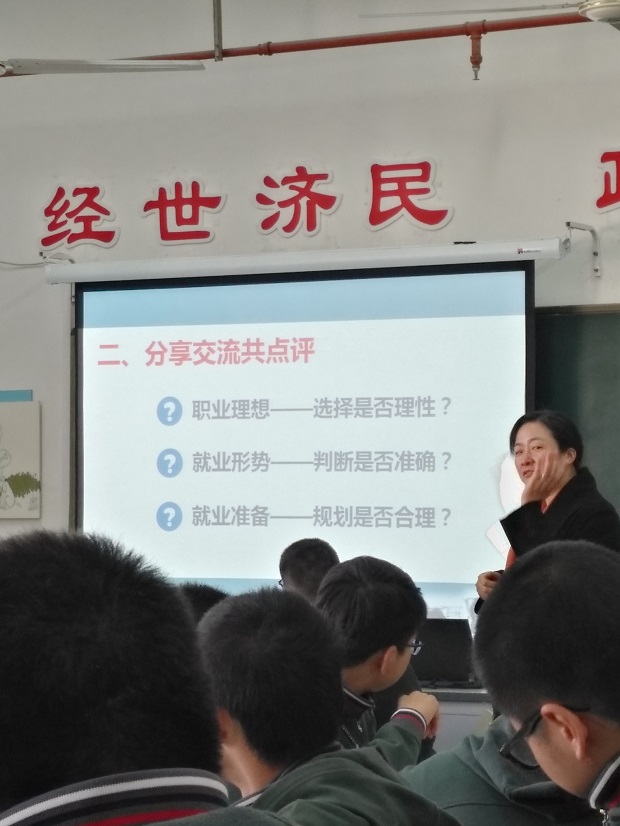 第二节授课老师,是我们的牵手专家刘平老师。刘老师这节课从筑梦、梦生、梦圆三大块展开学生活动,充分利用学生的综合实践活动,让学生成为课堂主角,开展就业创业调查报告、先就业还是先创业的思辨活动、人生职业规划、就业创业情境模拟的学生活动,通过这些活动进行价值引领,最后在激情四溢的配乐朗诵中结束本课。
