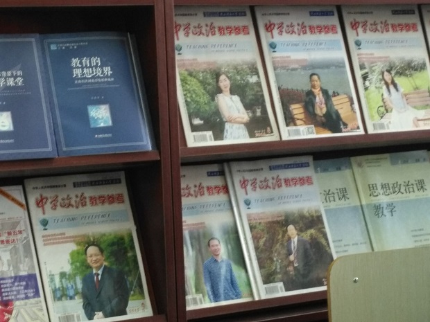 这两节课都是在省中政治学科中心进行的,所以我们除了听课之外,也深深为省中政治课的专业教室的氛围所折服,教室前后墙上都是言简意赅地体现政治学科核心素养要求,下面的书架也都是政治学科专业杂志。《文化生活》告诉我们,文化对人的影响来自特定的文化环境,这样专业的政治课氛围也是我们政治组需要学习和期待的氛围。